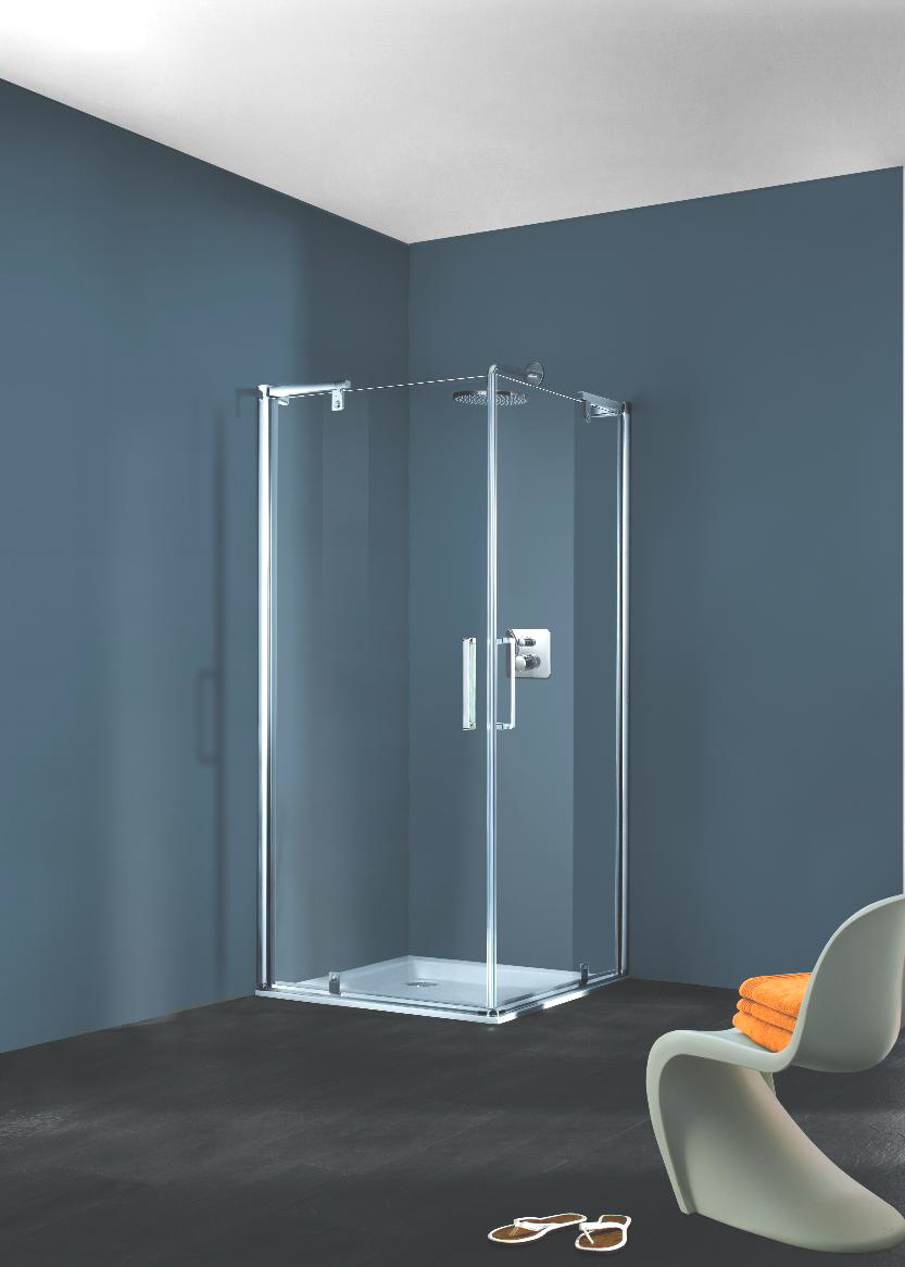 sarokbelépő fixrészes nyílóajtókkal zuhanykabin |